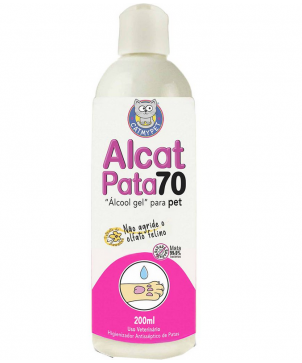 Para limpar e higienizar as patas ou pelagem do pet, aplique uma pequena porção de Alcat Pata 70, esfregue e espalhe até secar o produto.